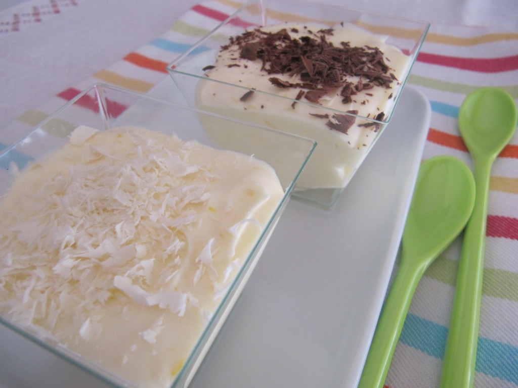 Bater as natas, que devem estar bem frias. Juntar a estas o lemon curd, envolvendo com cuidado. Passar para uma taça grande ou para tacinhas individuais e decorar com raspas de lima antes de servir. Como não tinha limas em casa, decorei com raspas de chocolate preto e branco.