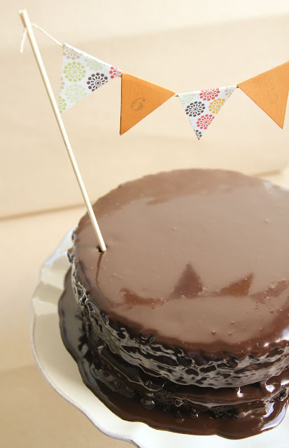Devil's Food Cake com cobertura gulosa de chocolate (bolo - receita de David Lebovitz; cobertura - receita do livro Chocolate) Para o bolo: 70 g de cacau em pó 200 g de farinha sem fermento 1/2 colher de chá de sal 1 colher de chá de bicarbonato de sódio 1/4 de colher de chá de fermento em pó 125 g de manteiga sem sal à temperatura ambiente 250 g de açúcar (usei amarelo) 2 ovos L (usei 3 ovos M) 1/2 chávena de café forte ou água 1/2 chávena de leite Para a cobertura: 175 g de chocolate negro ou de culinária 75 g de chocolate de leite 3 colheres de sopa de açúcar amarelo 300 ml de natas (tinha-me esquecido de referir que usei só 200 ml - 1 pacote - e não me arrependi!) Pré-aquecer o forno nos 180º. Untar e polvilhar com farinha duas formas de 20 ou 22 cm e forrar-lhes o fundo com papel vegetal que se unta e polvilha também. Peneirar para uma taça o cacau, a farinha, o sal, o bicarbonato de sódio e o fermento. Na taça da batedeira eléctrica, bater a manteiga e o açúcar até estar cremoso e fofo. Adicionar os ovos, um a um. Juntar metade dos ingredientes secos à mistura de manteiga e açúcar. Adicionar o café e o leite, misturados antes à parte. Adicionar por fim os restantes secos. Dividir a mistura pelas duas formas e levar ao forno cerca de 25 minutos ou até um palito sair seco quando espetado na parte central dos bolos. Enquanto o bolo arrefece, prepare o recheio e a cobertura: Derreter os chocolates partidos em pedaços em banho-maria. Retirar do calor e juntar o açúcar e as natas, mexendo bem. Deixar arrefecer e usar para rechear e cobrir o bolo. Nota: desta experiência, que serviu para cantarmos os parabéns ao pai do G., gostei mais do creme da cobertura e do recheio do que do bolo, apesar do seu sabor intenso e da sua textura perfeita, com migalhas grandes húmidas (à falta de melhor descrição). Há quem diga que esta receita norte-americana foi assim baptizada por oposição ao 'Angel Food Cake' - um bolo branco, muito leve e fofo.