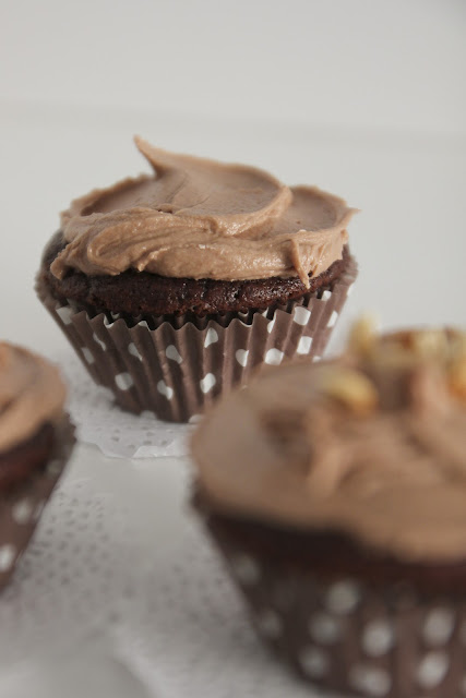 Na realidade, este creme de manteiga e Nutella da cobertura, nem sequer leva assim tanta manteiga. Bem batido, fica muito suave e confere doçura ao cupcake, uma vez que a massa de chocolate, propositadamente, é pouco doce.
