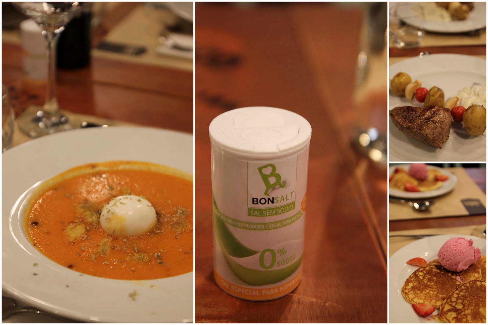 E que divertido que foi! Do menu constava uma sopa de tomate maravilhosa, um naco de vitela com espetadas de batatinhas e tomate cereja e panquecas com gelado de morango, sempre com a presença do Bonsalt, que se usa tal e qual o sal normal.