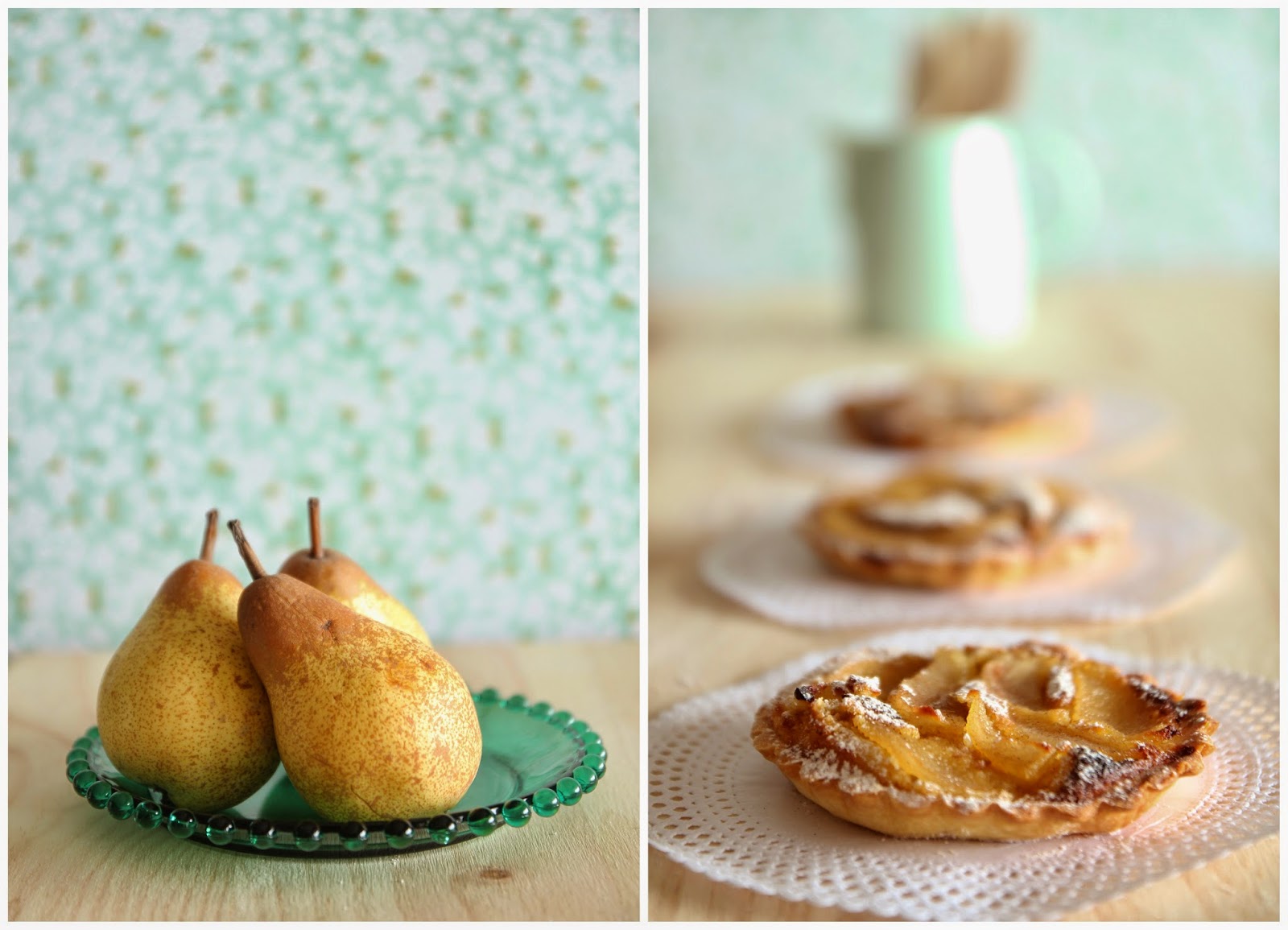 A receita para estas tartes encontrei-a precisamente na edição especial nº 200. Ao contrário da receita original, usei massa quebrada caseira, pêras frescas e não de conserva, e terminei com uma mistura de canela e açúcar em pó. Apesar de as ter feito para sobremesa, concluí que são mais indicadas para lanche, pois são bastante leves e pouco doces. Acho que lhes falta um certo power que gosto de sentir nas sobremesas, mas acho que isso se podia resolver com uma bola de gelado...