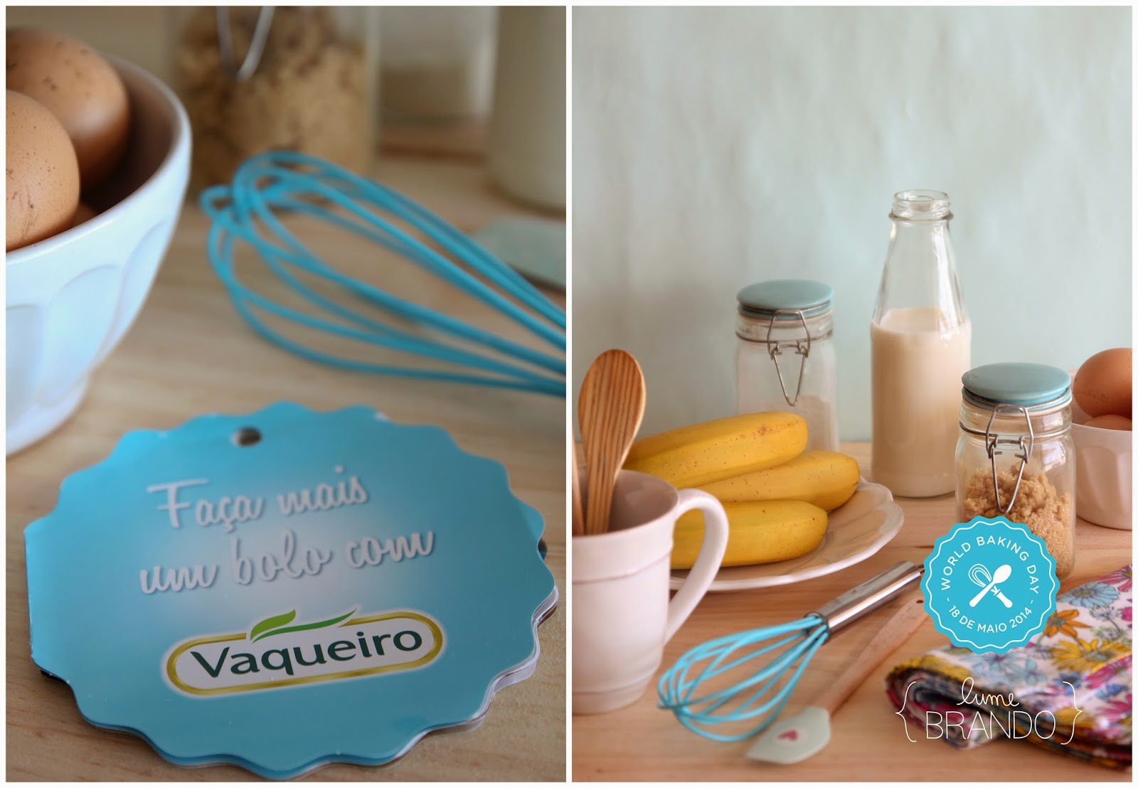 Hoje é dia de ligar o forno, fazer um bolo e mimar alguém especial. Quem diz um bolo, diz umas bolachas, uns queques ou uma tarte. Claro que podemos fazer isto noutro dia qualquer, mas hoje, para além de ser domingo - dia em que normalmente temos mais tempo para a cozinha - é o World Baking Day. Em Portugal, esta data é dinamizada pela Vaqueiro, que pretende reforçar a importância da comida caseira e da partilha. No âmbito desta iniciativa, recebi há uns tempos uma caixa muito engraçada em forma de forno. Lá dentro, muitas surpresas, entre as quais a Vaqueiro líquida, a farinha Maizena e o açúcar Moreno Sores, ingredientes que usei nesta receita: um bolo de banana, coco e caramelo, que há muito tinha marcado no livro da Leonor de Sousa Bastos. E só depois de fazer o bolo é que me lembrei que já o ano passado tinha celebrado este dia com uma receita do Flagrante Delícia, um dos meus blogs favoritos, que infelizmente tem estado parado (volta Leonor, temos saudades!). Podem ver o meu post do ano passado aqui.